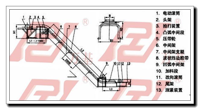 1、本系列产品为一般用途的散状物料连续输送设备,但采用的是具有波状挡边和横隔板的输送带。因此,特别适用于大角度输送。