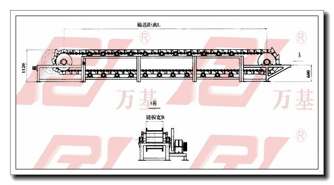 1、输送机的牵引链条采用专业链条厂家生产的高强度双排重型板式链,运行稳定可靠且使用寿命长;