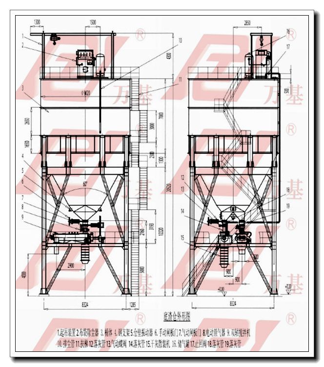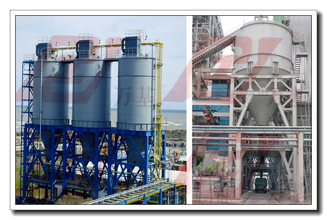 系统构成 渣仓与库顶及库底的卸料设备等组成一套完整的渣外运处理系统,主要由仓体、钢支架、检修平台扶梯、起吊设备、防雨棚、库顶除尘器、压力真空释放阀、库底卸料设备、料位计、仓壁振打器等组成.