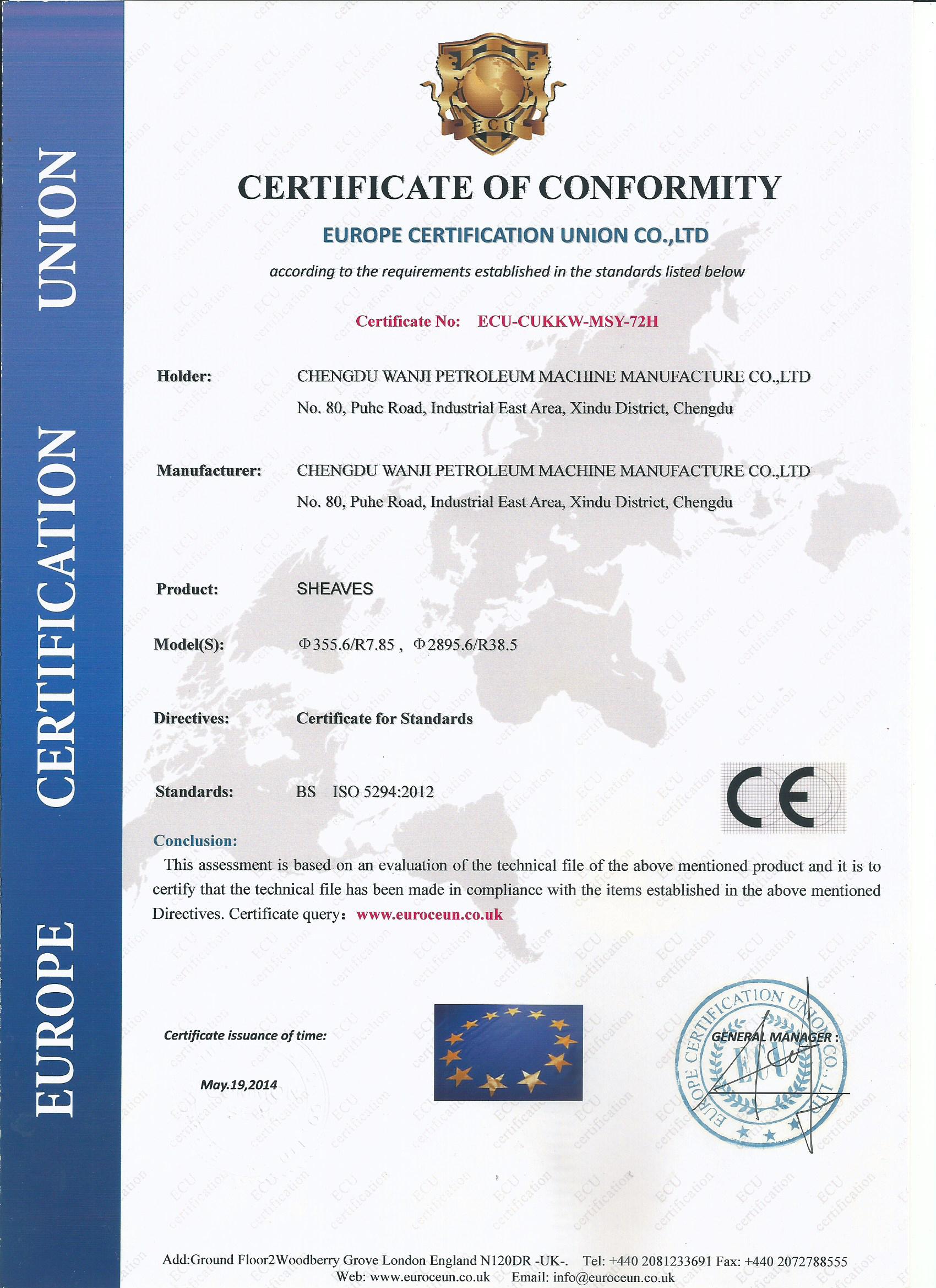 欧盟CE认证证书